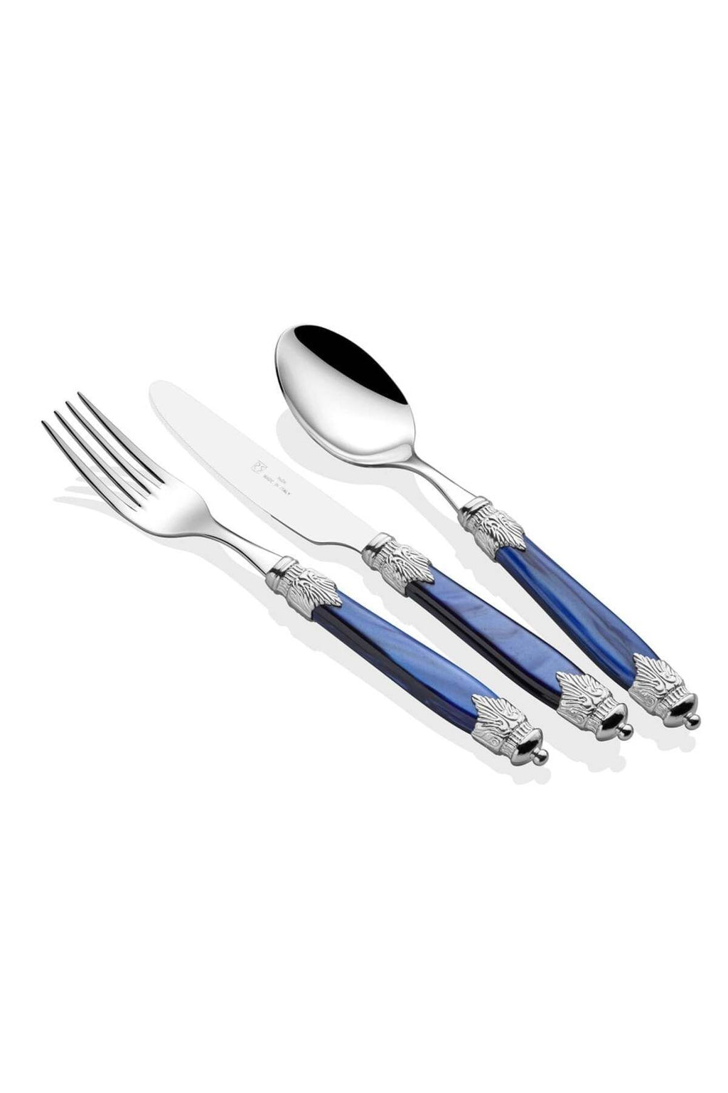 6 kişilik geniş kullanım kapasitesiyle aile yemeklerinden özel davetlere kadar her türlü sofranız için ideal bir seçim; Şık ve modern tasarımıyla dikkat çeken Arianna chrome lacivert çatal bıçak seti, sofralarınıza zarif bir dokunuş katıyor; Paslanmaz çelik malzemesi sayesinde uzun ömürlü kullanım ve kolay temizlik imkanı sunar; Her bir parça, dayanıklılığı ve estetiği bir arada sunarak mutfakta vazgeçilmez bir aksesuar haline gelir;
