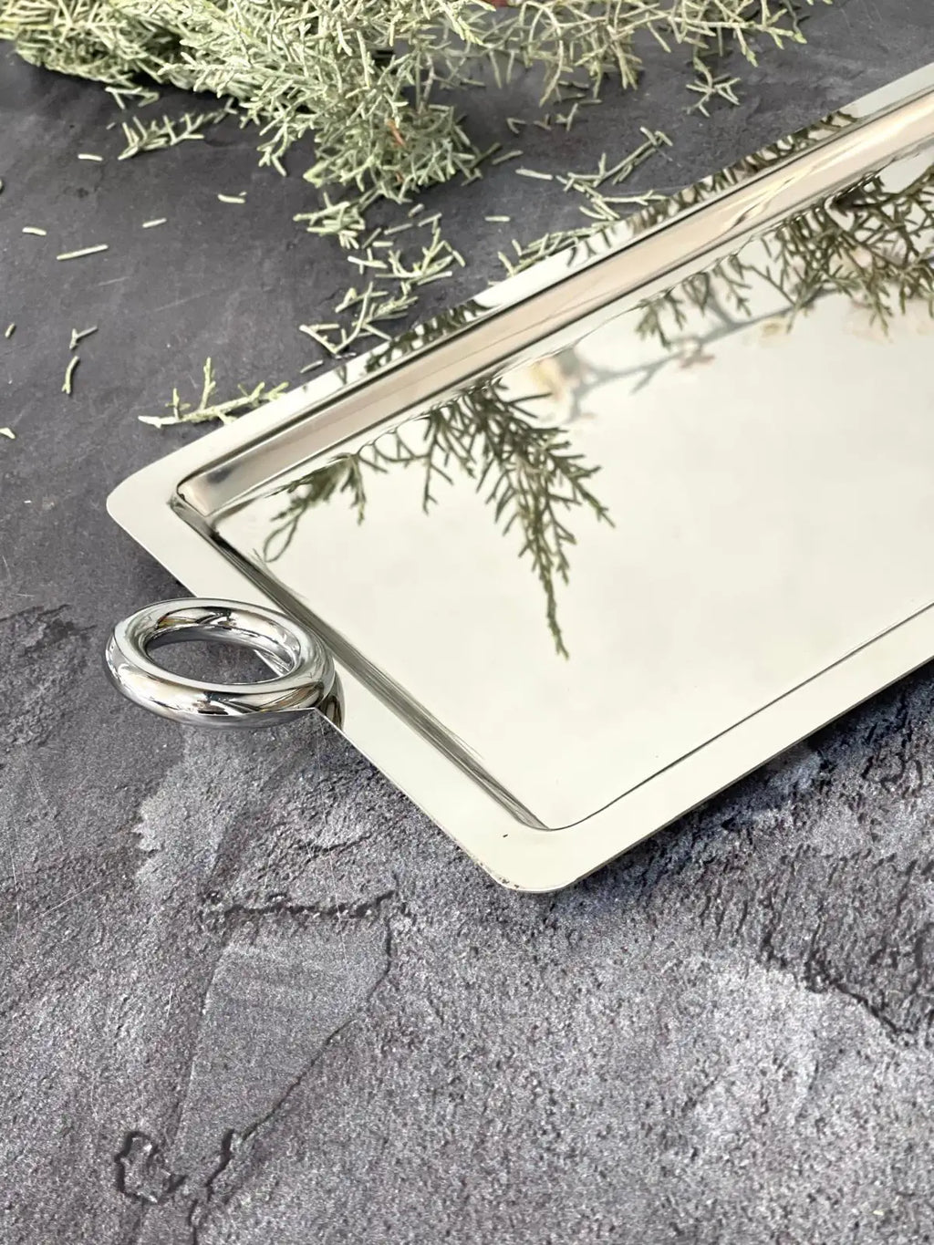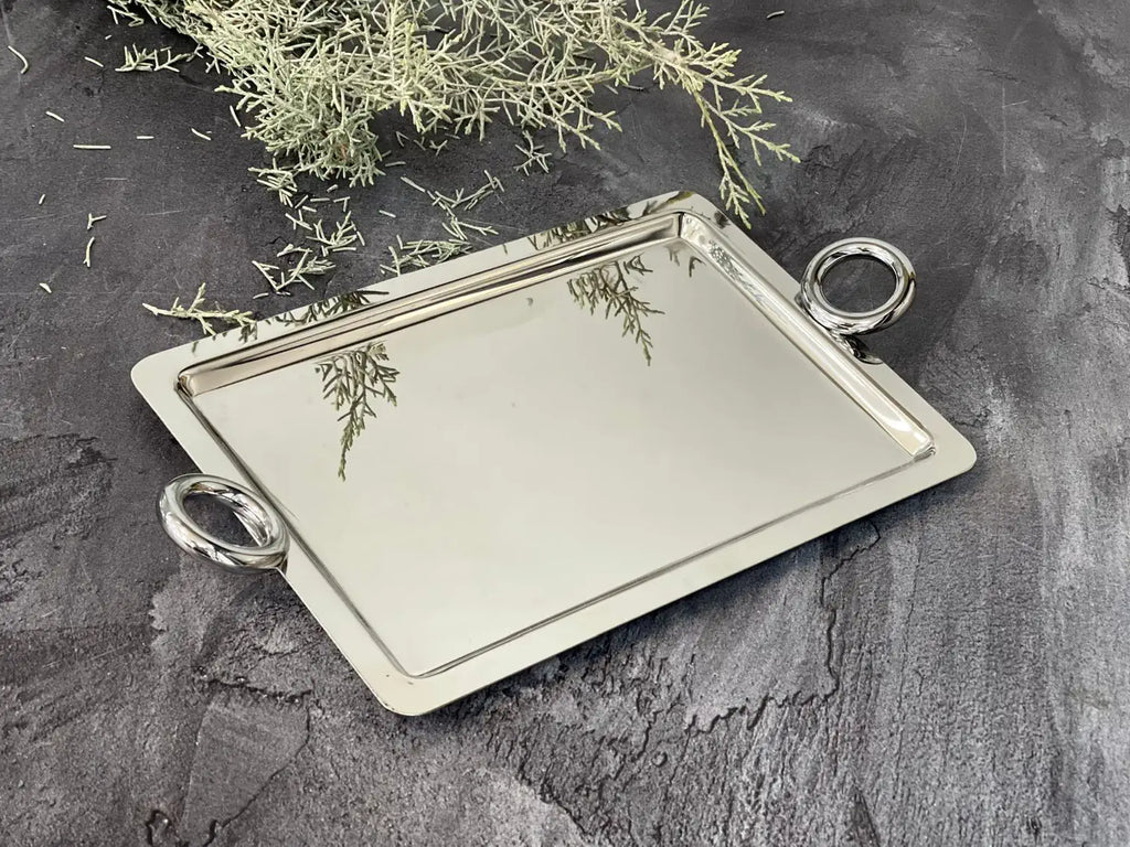 Dikdörtgen Krom Kulplu İkramlık Tepsi