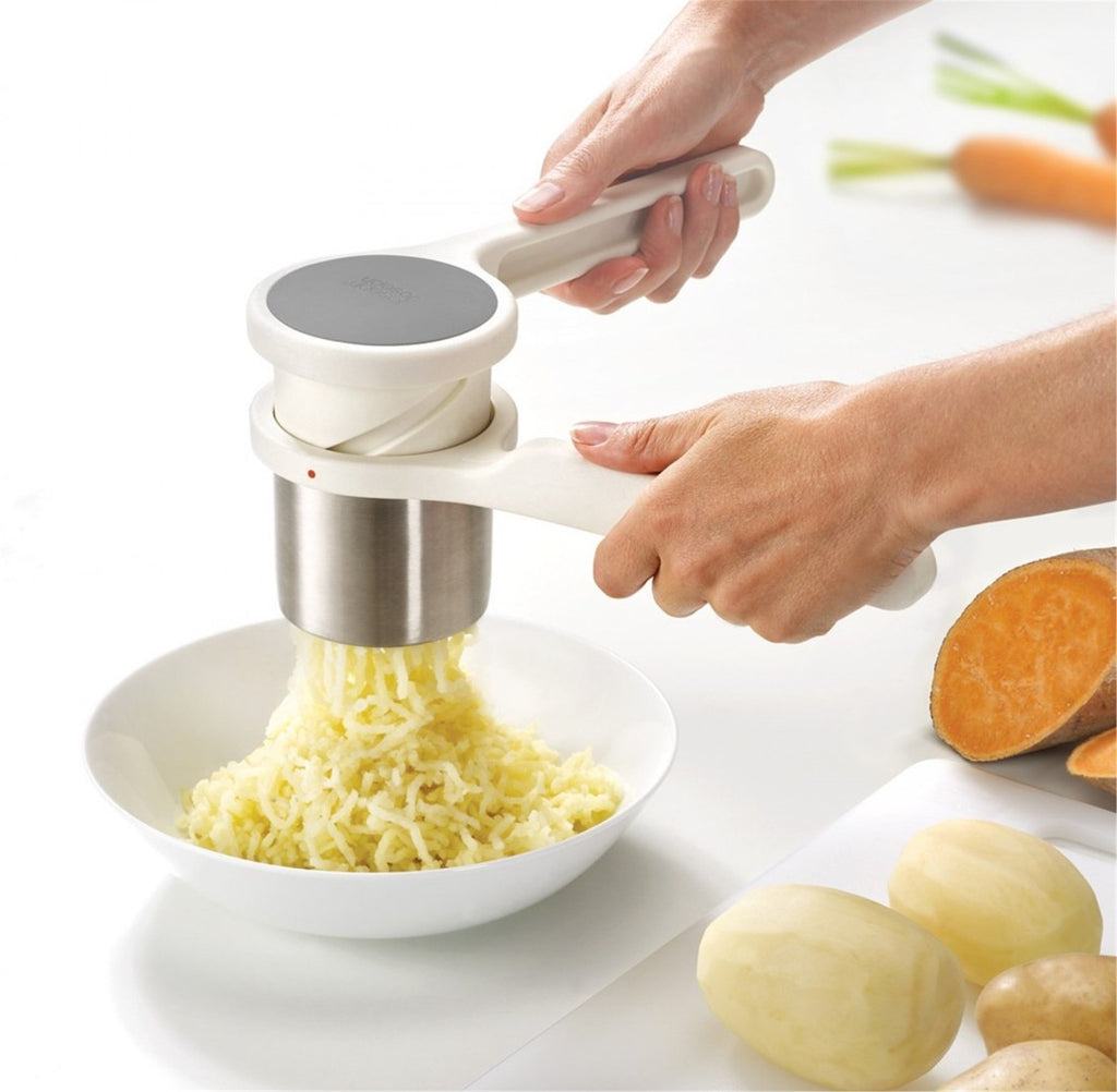 Elle kullanılan patates eziciler genellikle zor kullanılır, dikey hareket de insanın bileklerini zorlar. Helix serisinde ise sıkma hareketi yatay olduğu için aletin kullanımı çok daha kolaydır, üstelik omuzlarınızla güç verebilirsiniz. Yenilikçi büküm hareketi, ezme işlemini kolaylaştırır. Pürüzsüz patates püresi ve sebze püresi oluşturmak için ideal. Dayanıklı paslanmaz çelik ve naylon yapı. Temizlemesi kolay.
