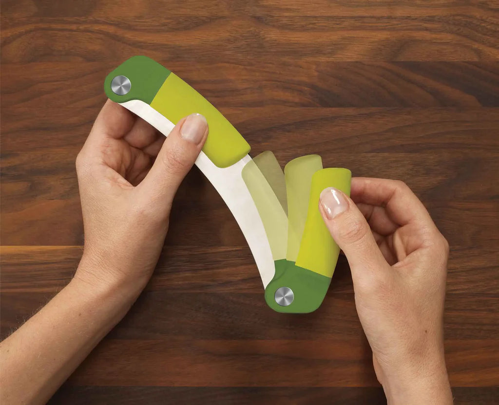 Bu kullanışlı doğrayıcı, otlarınızı doğramak için güvenli ve kolay bir yol sunar ve saklandığında mutfak çekmecenizde daha az yer kaplaması için düzgünce katlanabilir.
