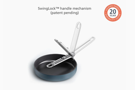 Space Serisinin en dikkat çekici özelliklerinden biri, katlanabilir paslanmaz çelik kulplarıdır. Bu kulplar, 20 yıllık kullanım ömrüne sahip SwingLock™ teknolojisiyle tasarlanmıştır ve ürünlerin boyutunu standart tencere ve tavalara göre %50'ye kadar azaltır. Bu sayede mutfak dolaplarınızda daha fazla yer açabilir ve ürünlerinizi kolayca saklayabilirsiniz.