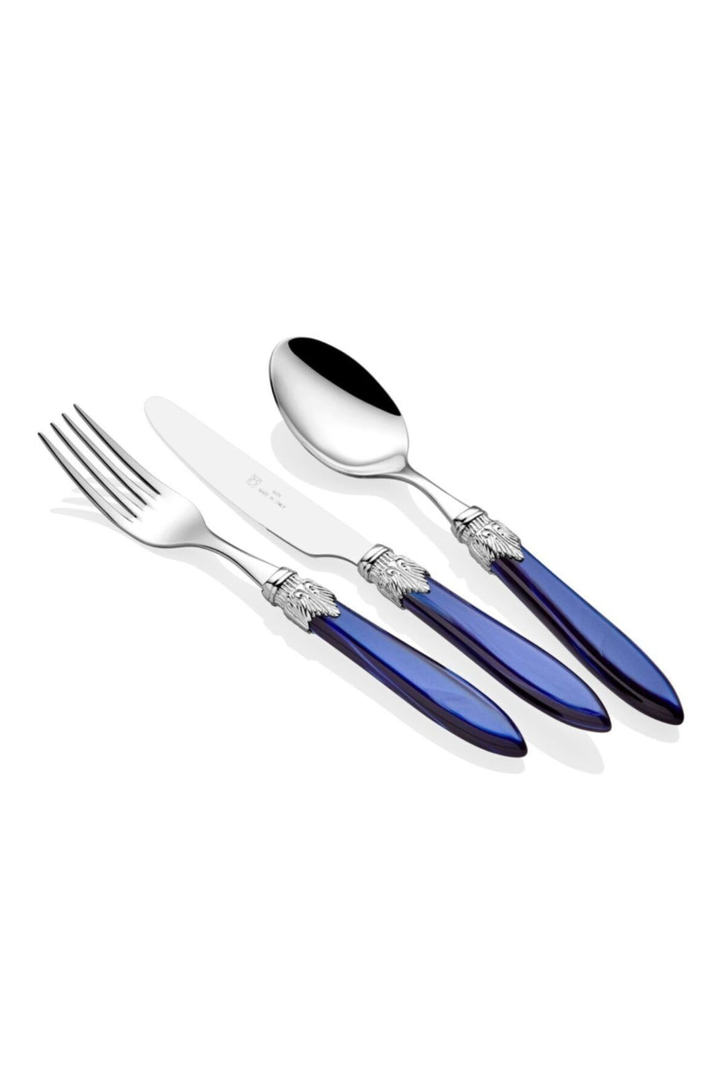 Rivadossi Laura Silver Lacivert 75 Parça Çatal Bıçak Seti 18/10 paslanmaz çelik, sap maddesi PMMA (Polimetil metakrilat) olan, 2,5 mm kalınlığa sahip, 12 parça yemek kaşığı 12 parça yemek çatalı 12 parça yemek bıçağı 12 parça tatlı çatalı 12 parça tatlı bıçağı 12 parça nescafe kaşığı 1 kepçe 1 servis kaşığı ve 1 servis çatalından oluşan Laura Silver 75 parça çatal bıçak seti, %100 İtalya üretimi, 65C dereceye kadar bulaşık makinesinde yıkanabilir;