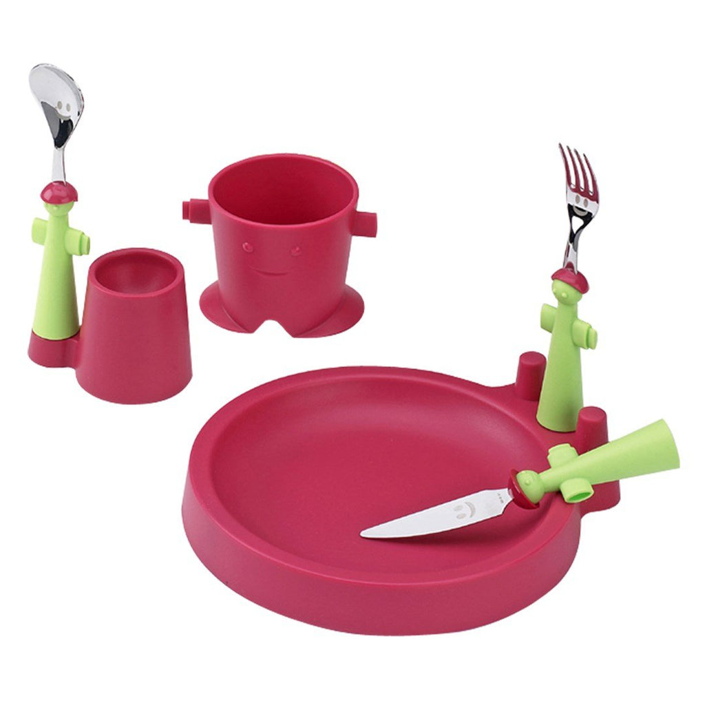 Bu set, 1 tabak, 1 bardak, 1 yumurtalık, 1 çatal, 1 bıçak ve 1 kaşıktan oluşur. Minik şefinizin ihtiyaç duyacağı her şey bir arada!